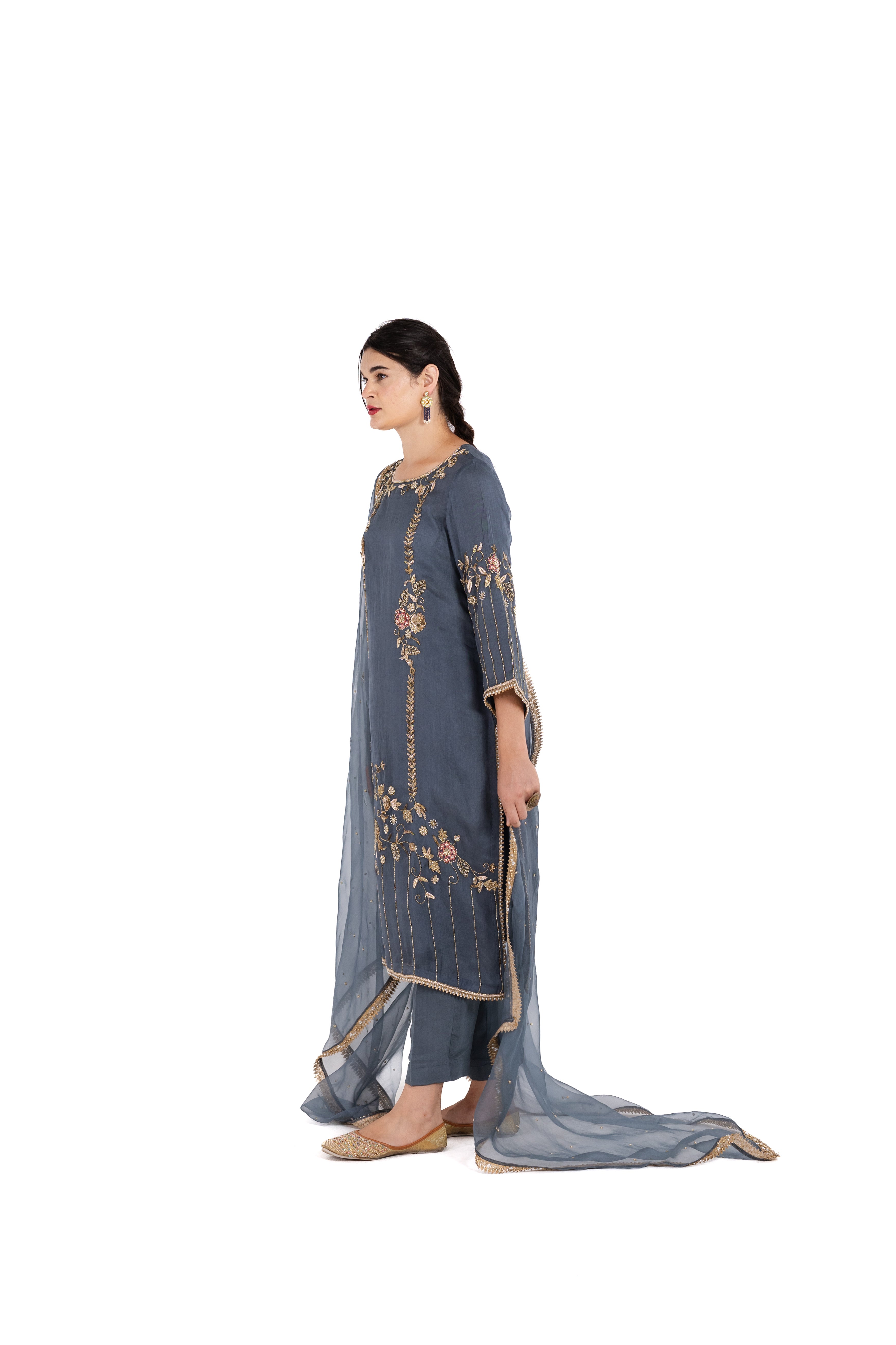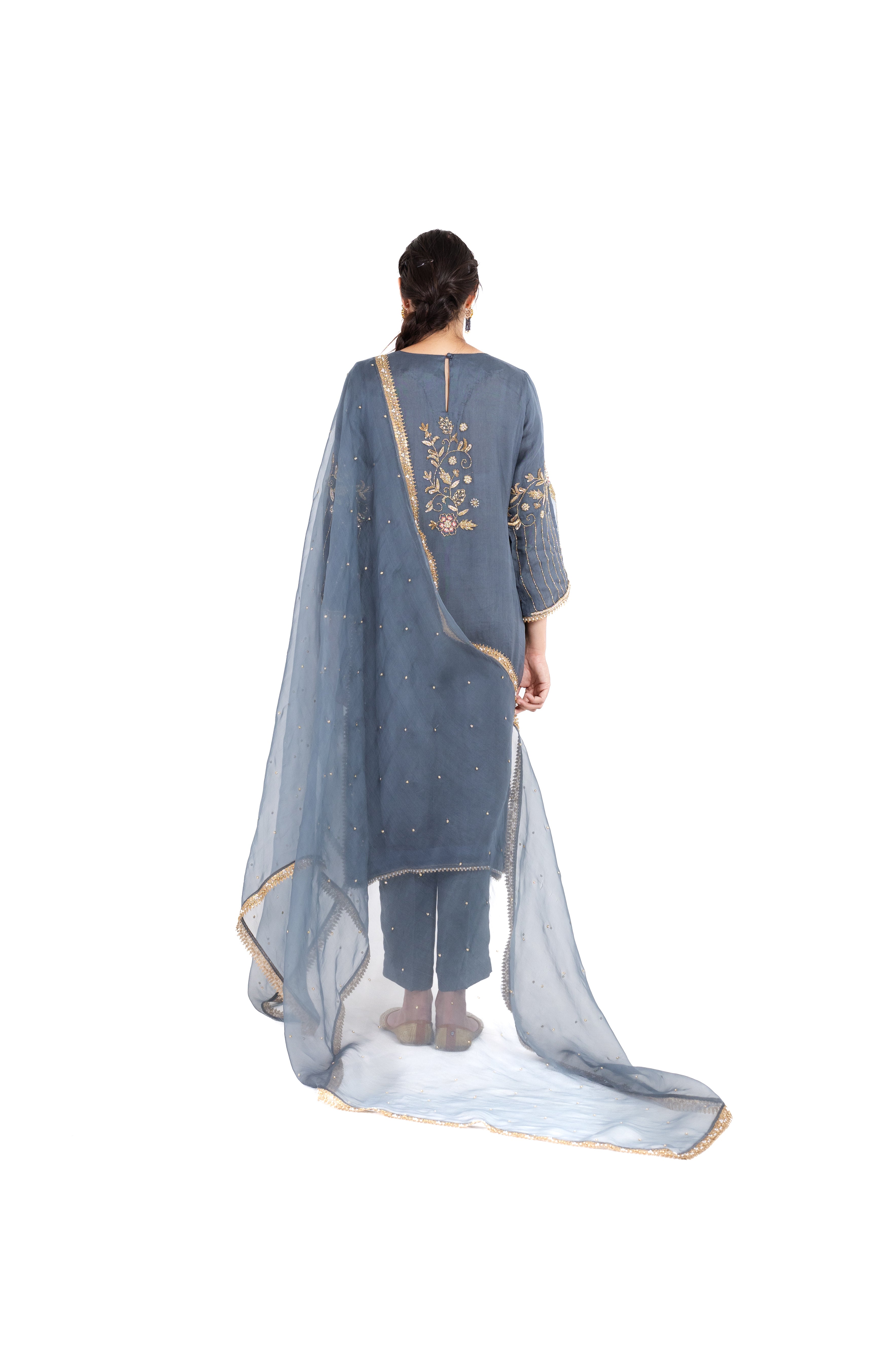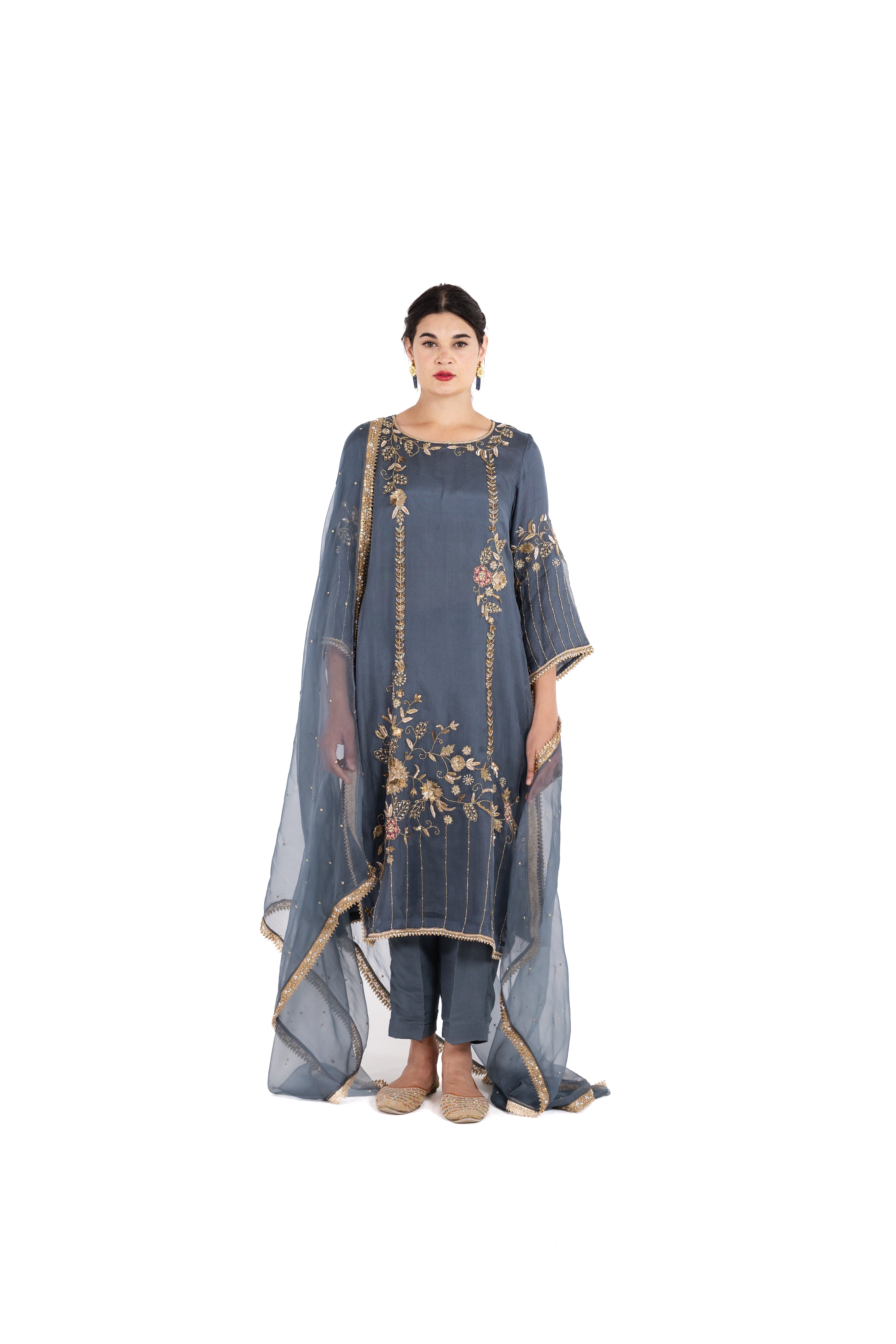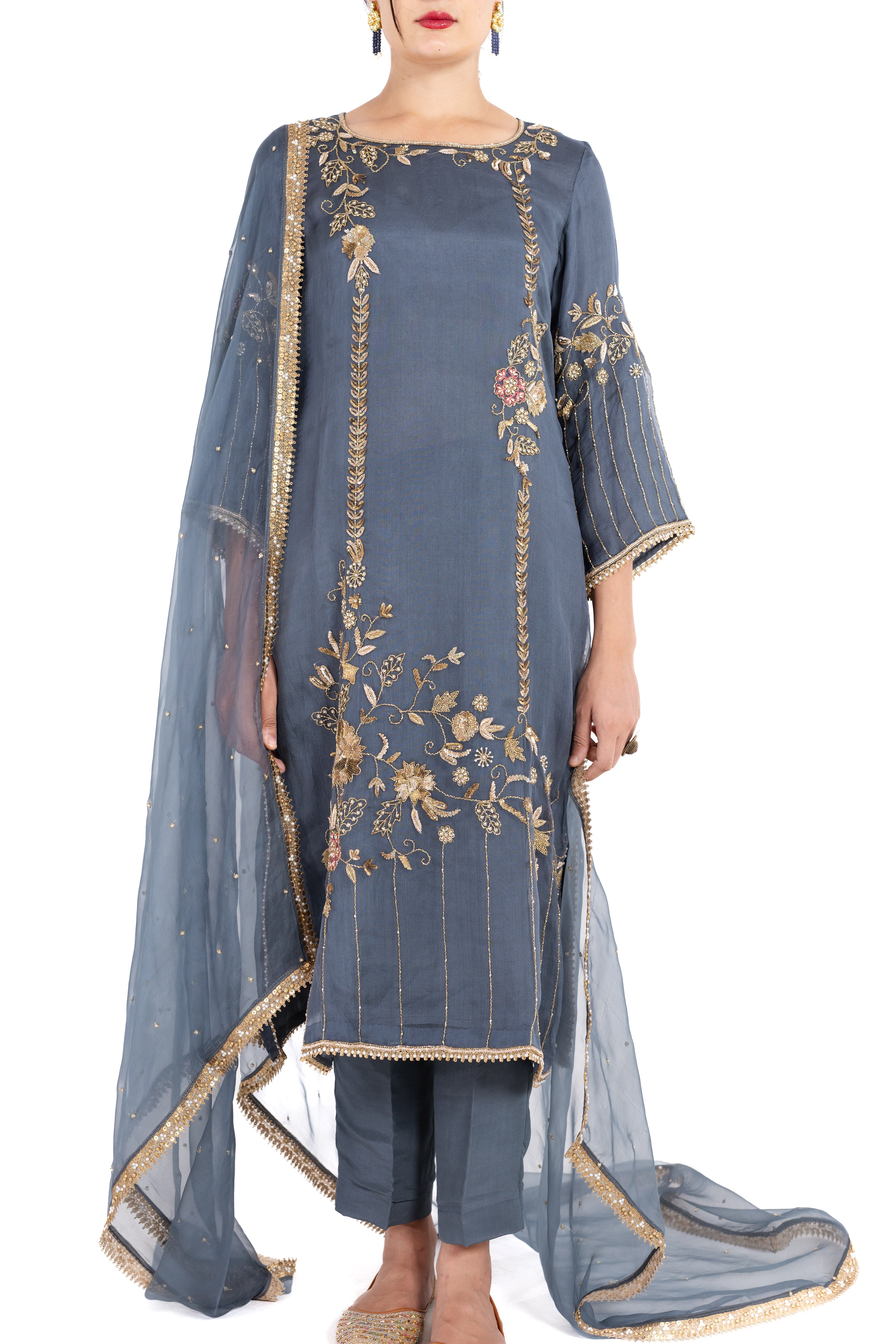 Professional dry clean recommended to preserve embroidery and fabric integrity. Store flat or hang using a padded hanger in a garment bag. Handle embellishments with care.