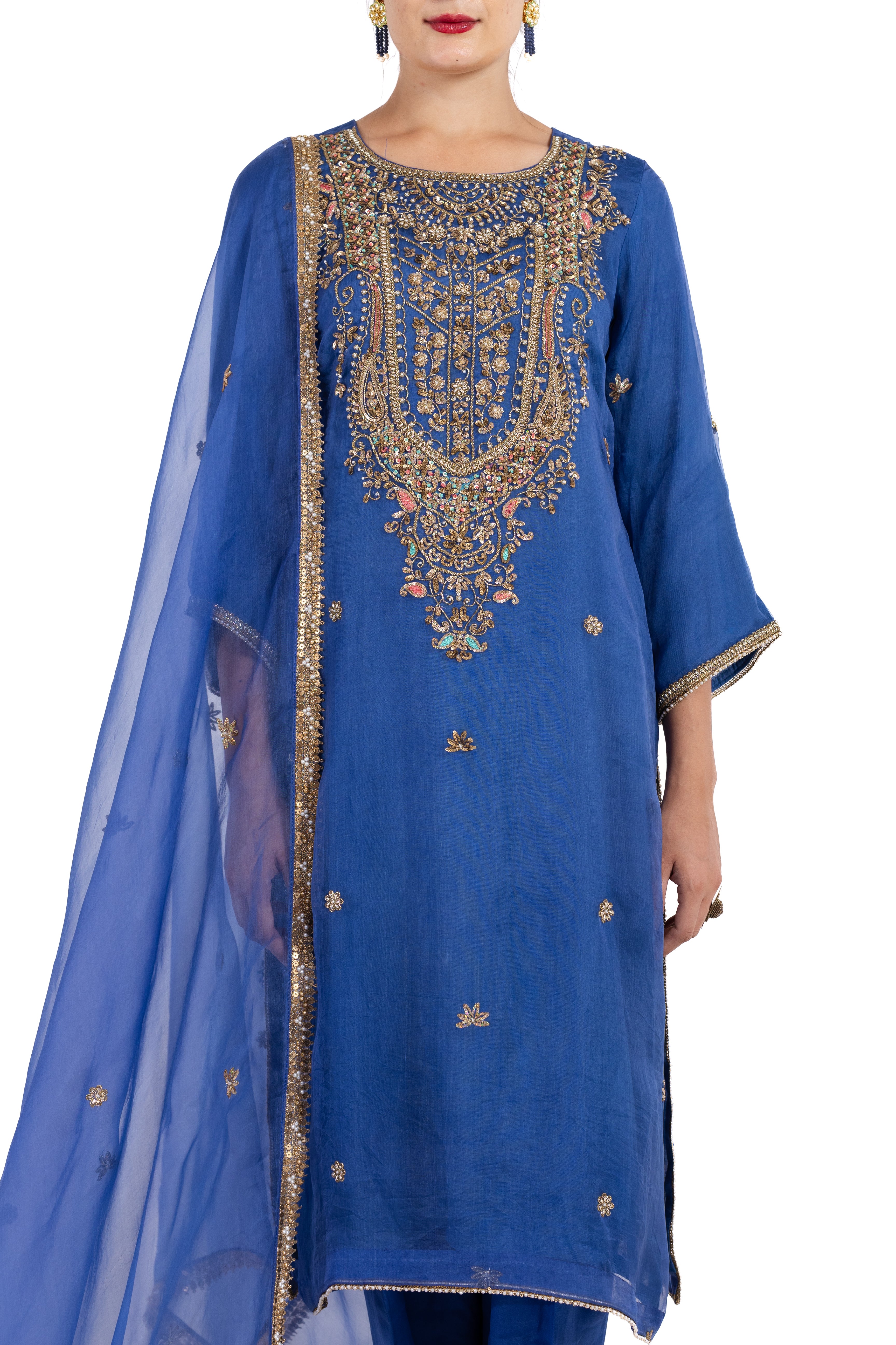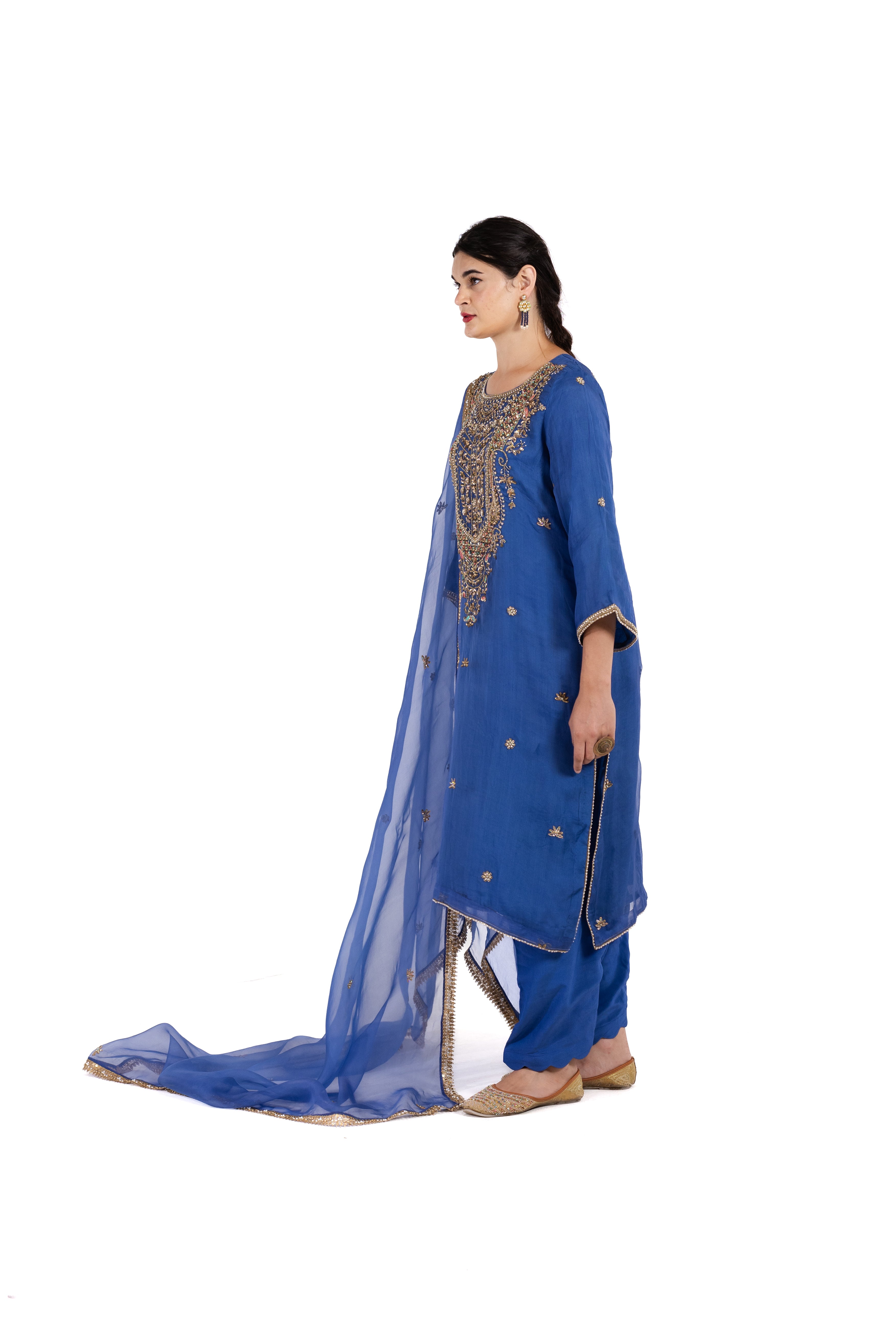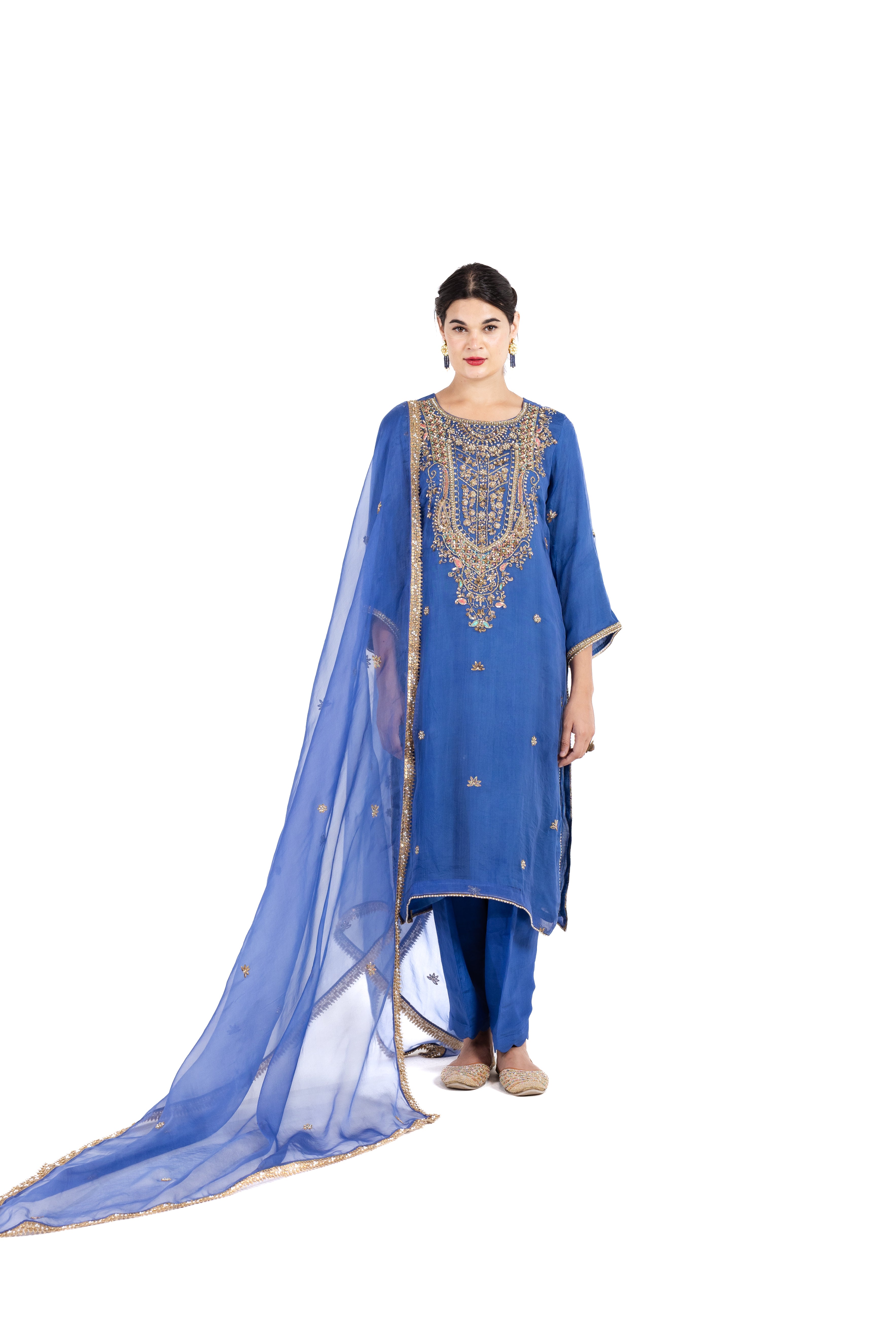 The Aminah is made of pure organza silk material with beautiful hand work on shirt and dupaata. The luminous organza silk provides an ethereal canvas for exquisite handcrafted embellishments, creating a stunning interplay of texture and sheen.