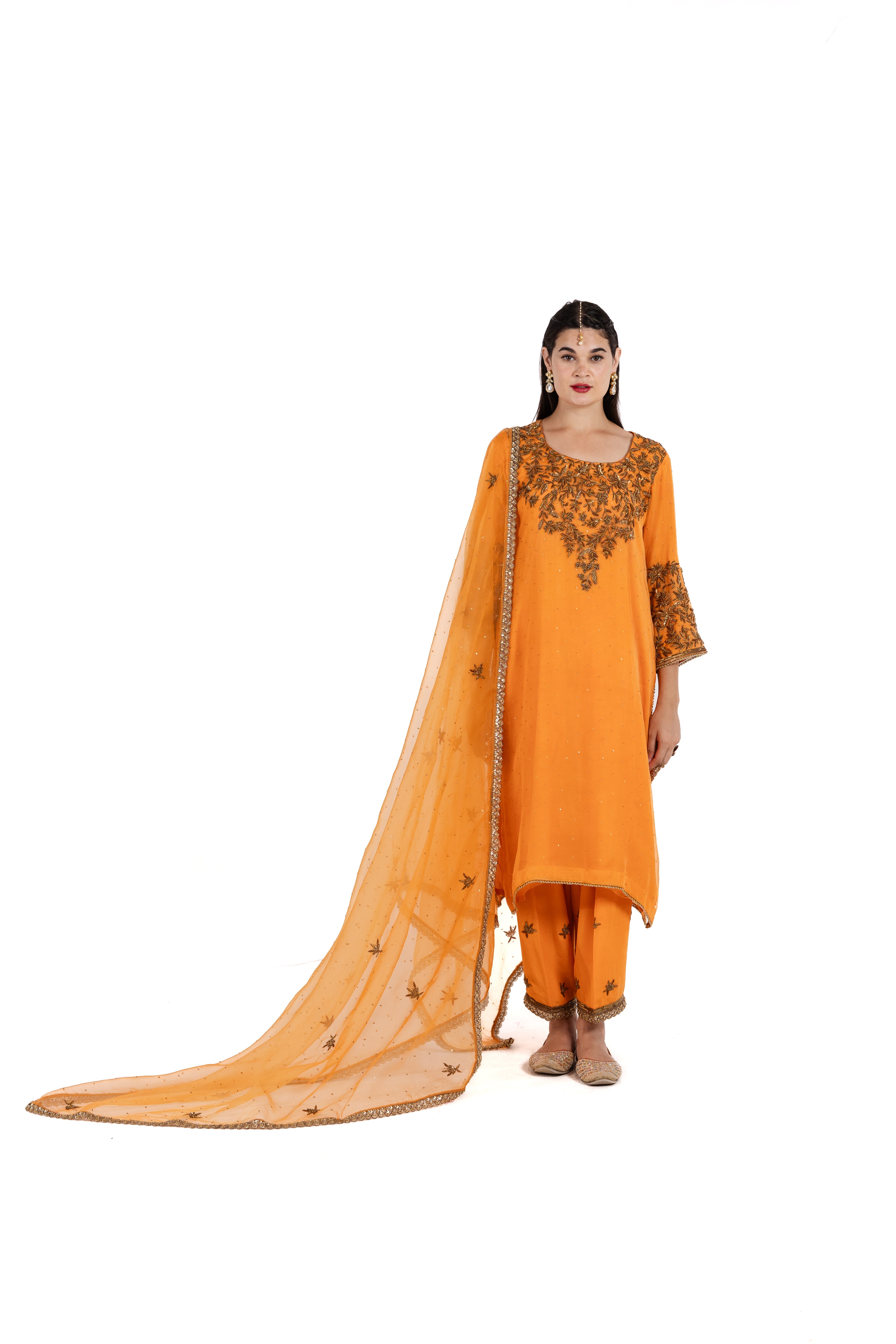 The intricate detailing throughout the suit adds a touch of timeless sophistication, making it an ideal choice for formal occasions and special gatherings. With its graceful silhouette and refined embellishments, The Arham is designed to make a statement and leave a lasting impression.